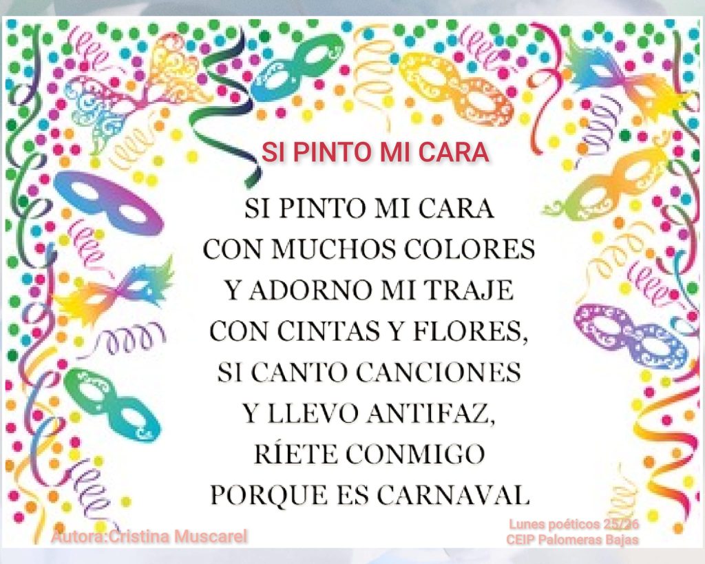 Es tiempo de colores, disfraces, canciones y muchas sonrisas. Hoy la poesía se disfraza con nosotros y nos invita a jugar, imaginar y reír sin parar ¡solo hace falta un poco de imaginación y muchas ganas de pasarlo bien!